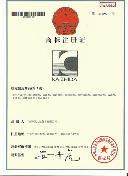 榮譽資質-企業概況-廣州市凱之達化工有限公司